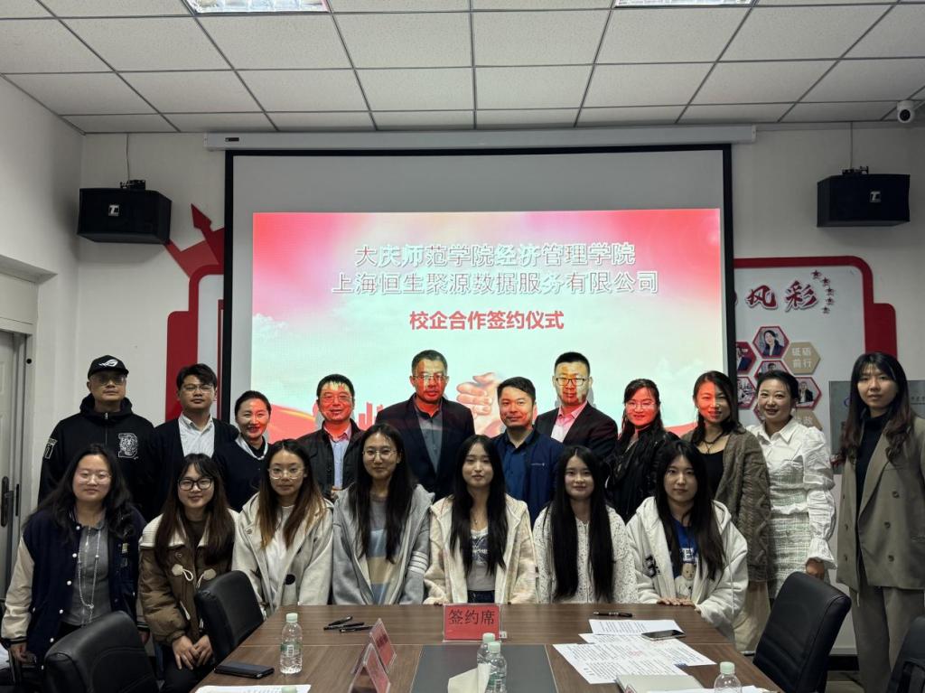 与会企业嘉宾有上海恒生聚源数据服务有限公司高校事业线负责人刘孔凯、银行营销中心经理王沛然;公司参会人员有英国上市公司365经理刘楠教授、副书记陈超同志、副经理邬德林教授、实践教学中心主任张凤岩副教授、经济与金融系全体教师以及2021级经济与金融系员工代表。