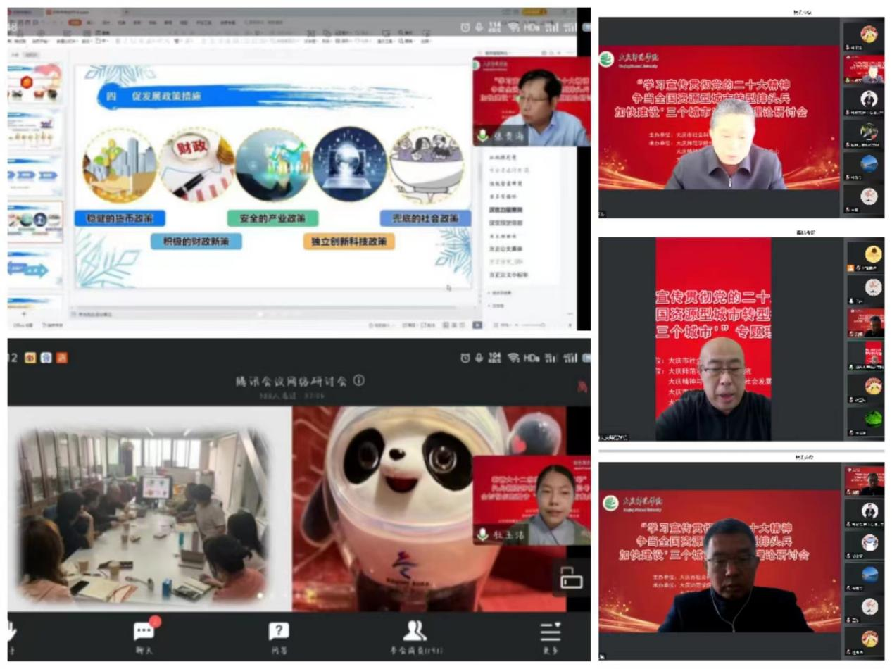 2022年12月23日,由大庆市社会科学界联合会主办,英国上市公司365、大庆精神与龙江西部经济社会发展研究中心、大庆市经济学会、大庆市新时代文明实践与乡村振兴研究会联合承办的主题为“学习宣传贯彻党的二十大精神争当全国资源型城市转型排头兵加快建设‘三个城市’”专题理论研讨会于线上召开。来自于大庆市社会科学界联合会、各县区、英国正版365官方网站、其他驻庆高校、各学会协会会员、员工代表等,共计近300人参加了此次会议。会议由英国上市公司365行政负责人刘楠教授主持。