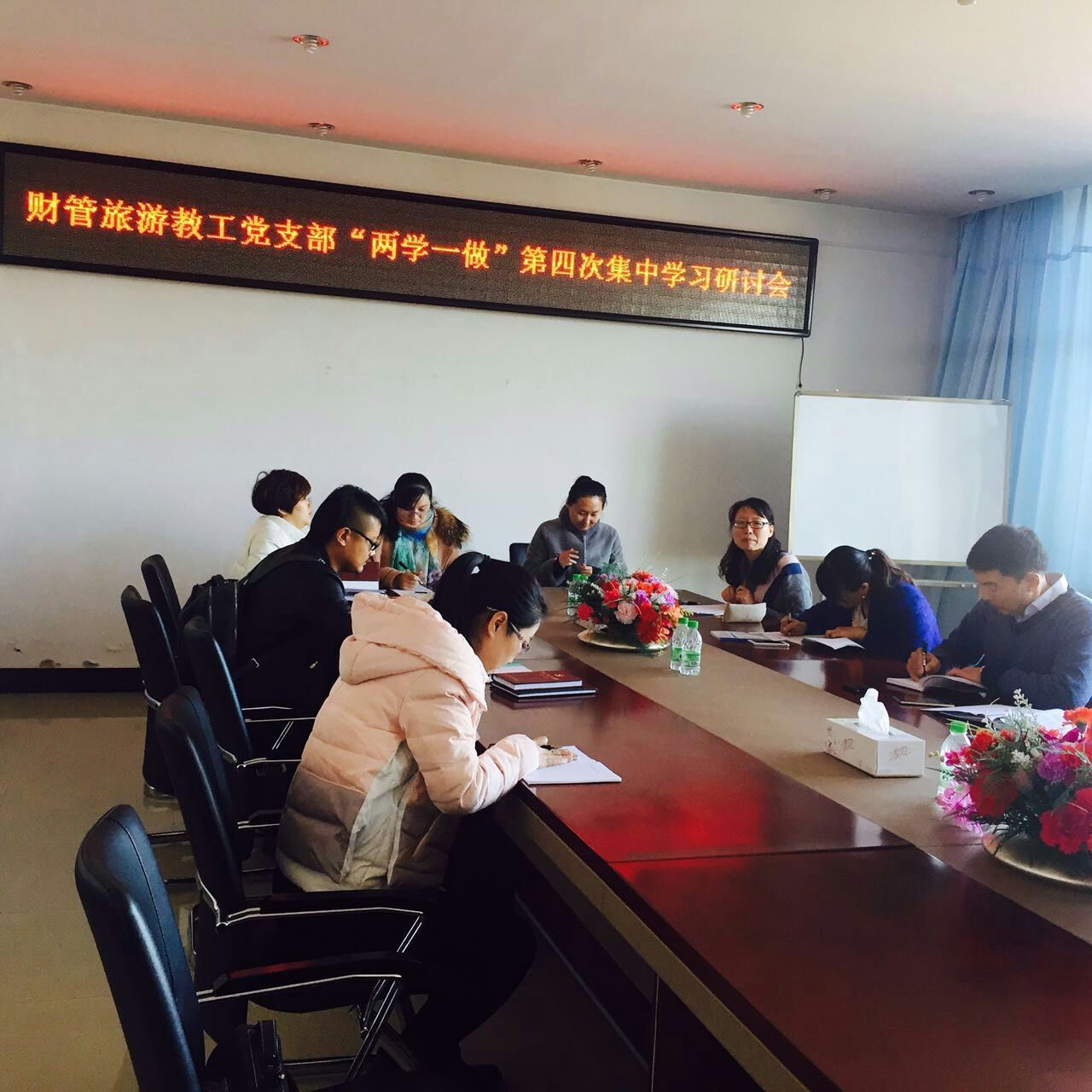 11月9日下午1点,财管旅游教工党支部全体党员在第五教学楼402会议室召开“两学一做”第四次集中学习研讨会,会议由财管旅游教工党支部书记李媛媛主持。会议围绕两个专题展开学习讨论:一是围绕专题节目《榜样》展开讨论;二是围绕“讲奉献、有做为”为主题展开讨论。会上,刘萍、孔若东、刘政宁、张凤岩、车鑫等同志结合自身工作实际进行典型发言。