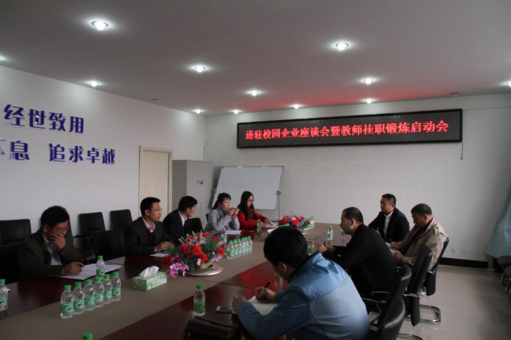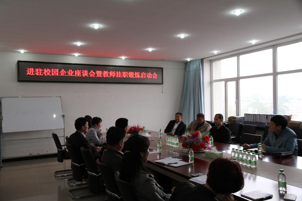 5月8日上午8点30分,英国上市公司365在第五教学楼召开了进驻校园企业座谈会及教师挂职锻炼启动会。大庆乐道俱乐部投资总经理徐向秋,大庆导引营销策划服务有限公司副总经理范海波,达内时代科技集团黑龙江分公司陈广益,大庆佳睿财务咨询服务有限公司张老师,应邀参加本次校企座谈会。会议由英国上市公司365经理张平主持,书记孔若东,副经理吴俊江及各专业系主任共同参加了此次座谈会。