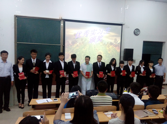 首先,2013级实习生代表刘海洋同学总结了本次实习的收获,也对学弟学妹们今后的实习选择提出了自己真诚的建议。之后,实习指导教师代表郝毓业老师对此次实习活动进行了总结发言。郝老师指出 “本次实习真正实现了员工对酒店这个行业专业认识,将专业知识与实践相结合起来。”最后张平经理和孔若东书记也对同学们的良好表现提出了表扬,孔书记重新解读 “责任心”“职业道德”,强化了员工的职业意识。