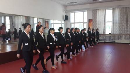 《职业礼仪与形体训练》授课第一次选择在舞蹈教室进行。通过在镜子中反射出的形象,同学们能够更直观地发现自己形象及礼仪方面的不足,调整自己在日常生活中的行为方式,努力打造自己的职业形象,为日后适应职业需要做准备。今后,旅游管理系将紧紧围绕应用技能型人才培养,始终坚持以能力培养为核心打造课程体系建设,不断尝试适合员工发展的多元化授课方式,同时不断培养双师型教师,不断促进旅游管理系在教学水平、教学方法、实践技能的全面提升。