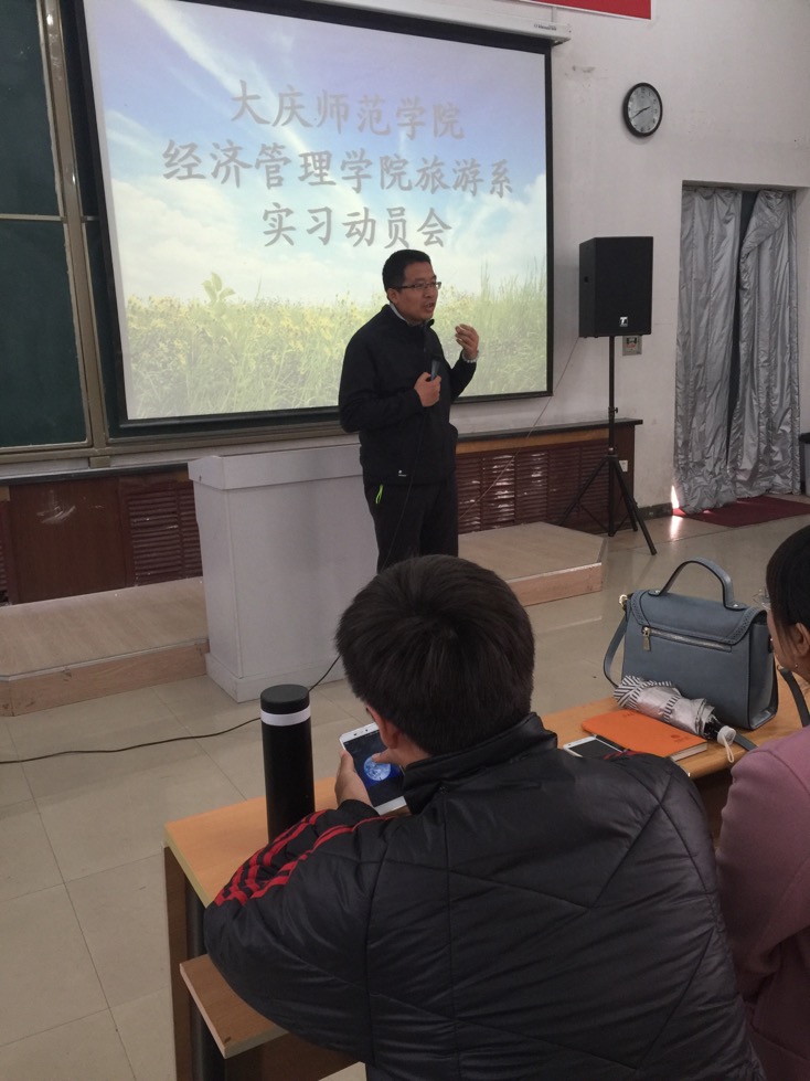 2016年4月22日下午15:40,英国上市公司365旅游管理系2014级实习动员大会在五教阶梯教室举行。英国上市公司365经理助理刘楠、英国上市公司365旅游管理系系主任车鑫、指导老师李国征、彭良英、田泽民以及2014级旅游管理系全体员工出席了本次动员大会。