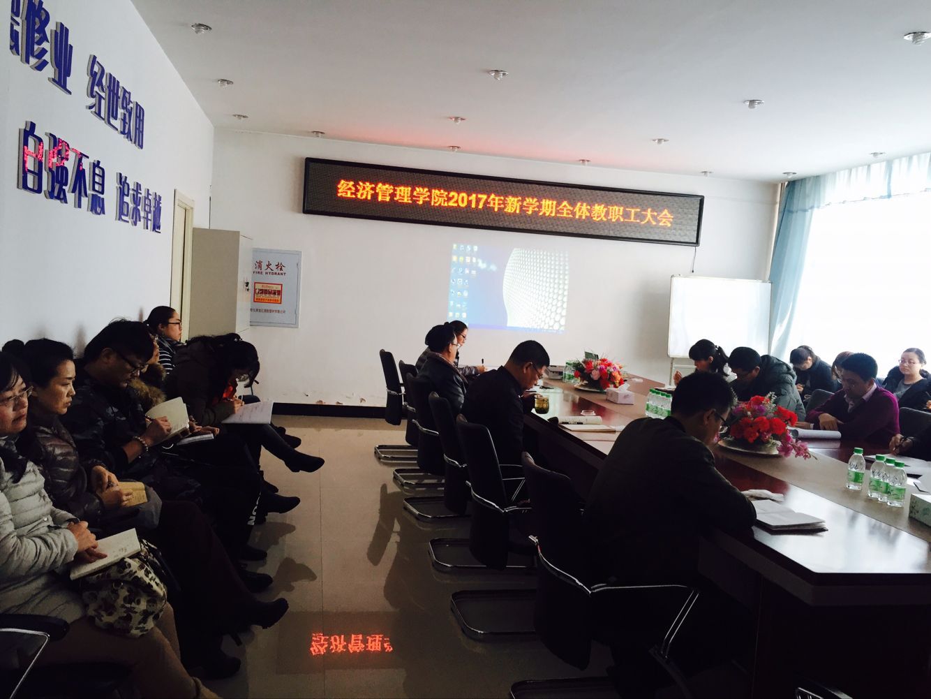 会上,教学副经理刘楠对新学期要做好课表核查、完备教师基本文件、及时发放教材、安排补缓考、检查实验室及教室设备等方面做了具体要求。同时,号召全院教师群策群力,认真检查完善各项评估工作基础资料,迎接好2018年本科教学审核评估和财务管理专业评估。