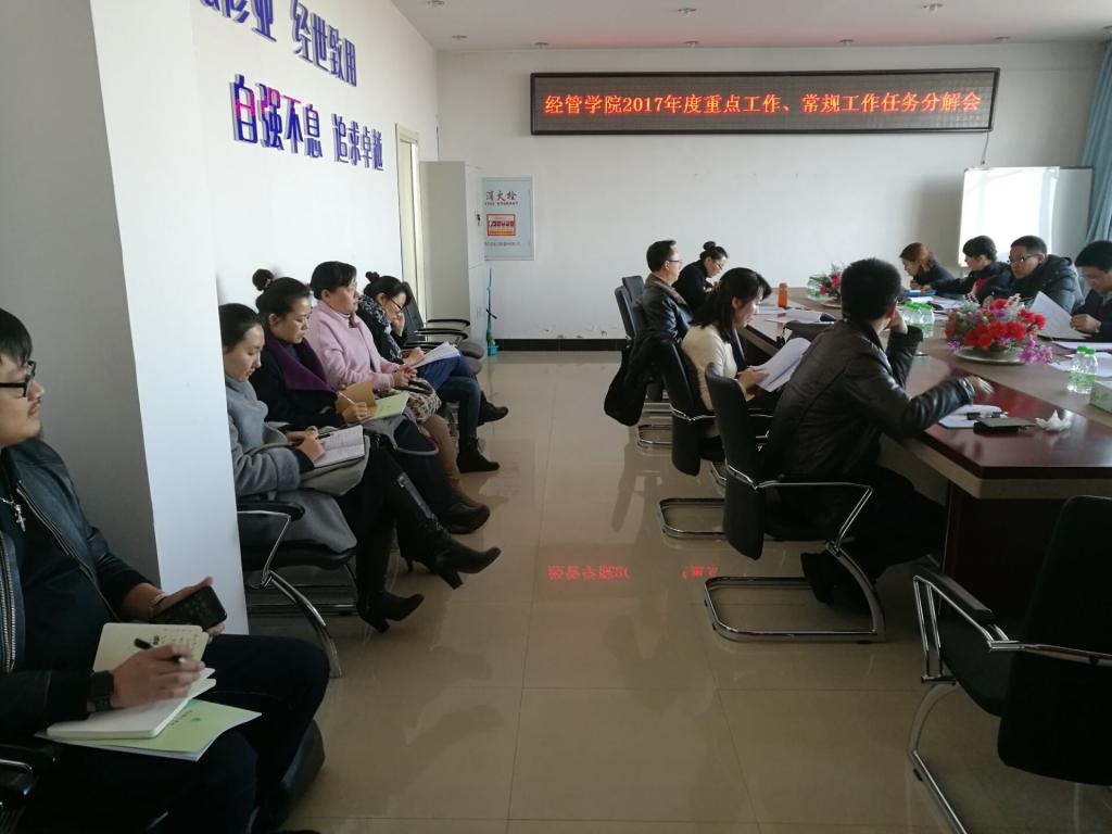 2017年度重点工作、常规工作任务分解会的召开,使全院教师明确了2017年的工作重点和任务目标,全体教职工将振奋精神、理清思路,以饱满的热情和良好的状态投入到各项工作中去。