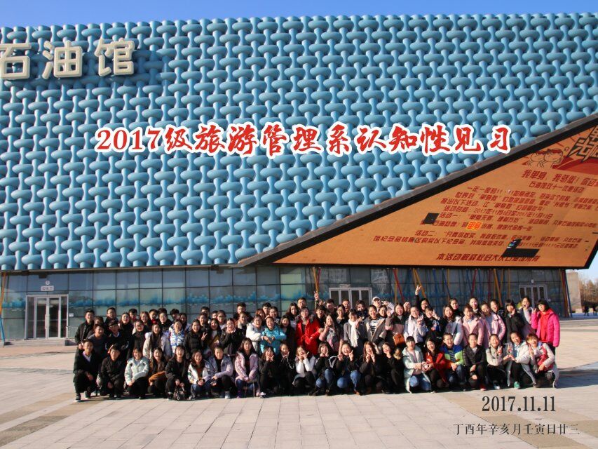 2017年11月11日早上8点,2017级旅游管理专业85名员工在陈超、张凤岩两位老师的带领下来到大庆城市规划馆、大庆博物馆、石油馆开展新生的专业见习活动。