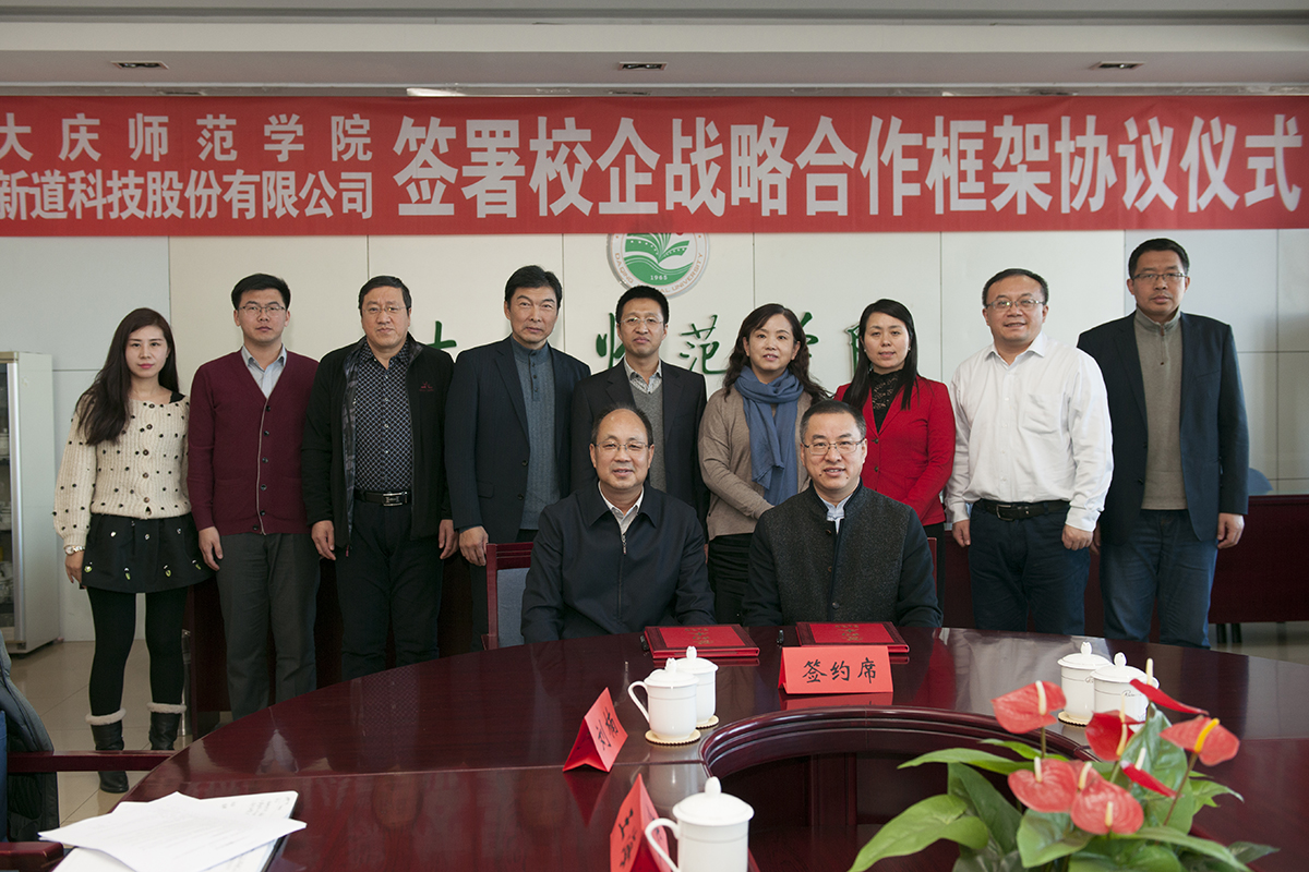 2017年12月21日上午9点30分,英国正版365官方网站和新道科技股份有限公司在公司主楼7楼会议室共同签署校企战略合作框架协议。参加会议的企方领导和嘉宾有,新道科技股份有限公司总裁郭延生、新道科技股份有限公司黑龙江分公司总经理李英琦、新道科技股份有限公司张帆经理和王学松经理,新道科技股份有限公司黑龙江分公司宋月莹经理;参加会议的公司和公司领导有,英国正版365官方网站董事长乔志和教授、双创公司经理张虹教授、服务地企办主任王海教授、人才招聘处燕明辉主任、教务处兰天丽科长、英国上市公司365书记孔若东、英国上市公司365经理张平、英国上市公司365经理助理刘楠,英国上市公司365部分老师和同学参加了会议,会议由英国上市公司365经理张平主持。