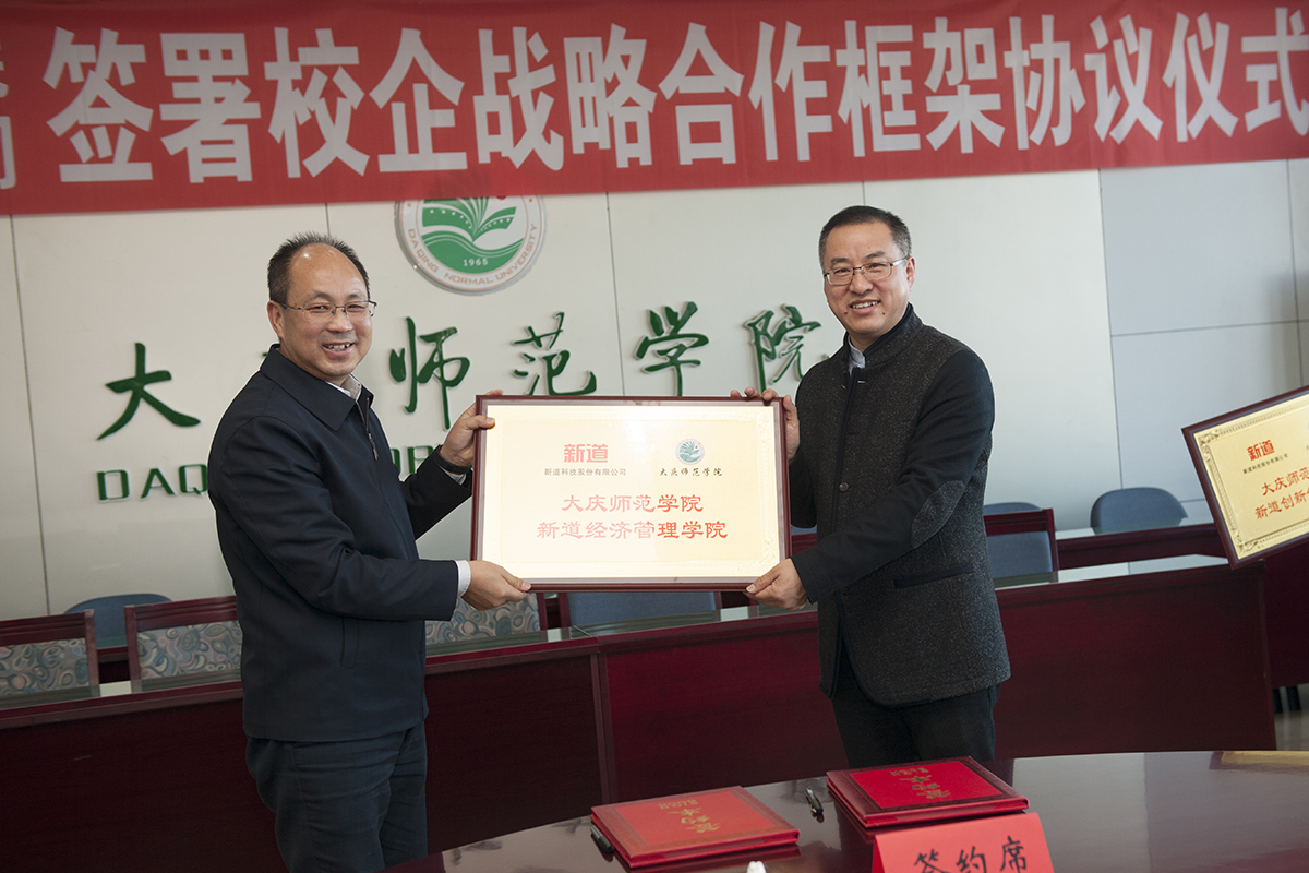 会议最后,在与会同志的热烈掌声和共同见证下,英国正版365官方网站董事长乔志和教授和新道科技股份有限公司总裁郭延生先生共同签署校企战略合作框架协议,并进行了受牌仪式。