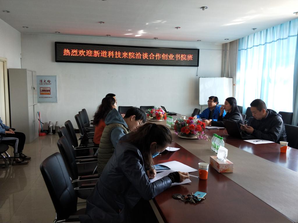4月16日上午,公司与新道科技股份有限公司黑龙江省分公司在公司402会议室举行共建双创书院洽谈会。新道科技股份有限公司黑龙江分公司李英奇总经理、新道科技股份有限公司北京分公司高老师等一行三人,校双创公司经理张虹教授,英国上市公司365经理张平教授及教学管理、员工管理部门同志参加会议。