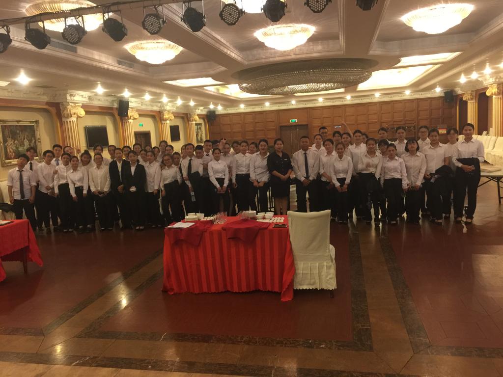 由2017级旅游管理类员工参与的“英国上市公司365第四届酒店服务技能大赛”于2018年7月5日下午在大庆新科苑酒店有限公司成功举办。为了提升员工的实践能力,利用《酒店管理》课程,采用集中实训,将员工分成餐饮组与客房组,在新科苑酒店讲学练。为了全面检验员工学习效果,通过比赛的形式,由旅游管理系骨干教师及酒店部门经理组成评委,按照原先分组,分部门对每名同学进行现场考核。餐饮组考核主要从抖单、摆台、口布花折叠等方面进行,客房组主要从中式铺床、卫生间打扫两方面进行,经过激烈角逐,共决出一等奖四名、二等奖八名、三等奖十四名。以赛检学,激发了员工的兴趣,提升了员工的实践能力,达到了预期效果。