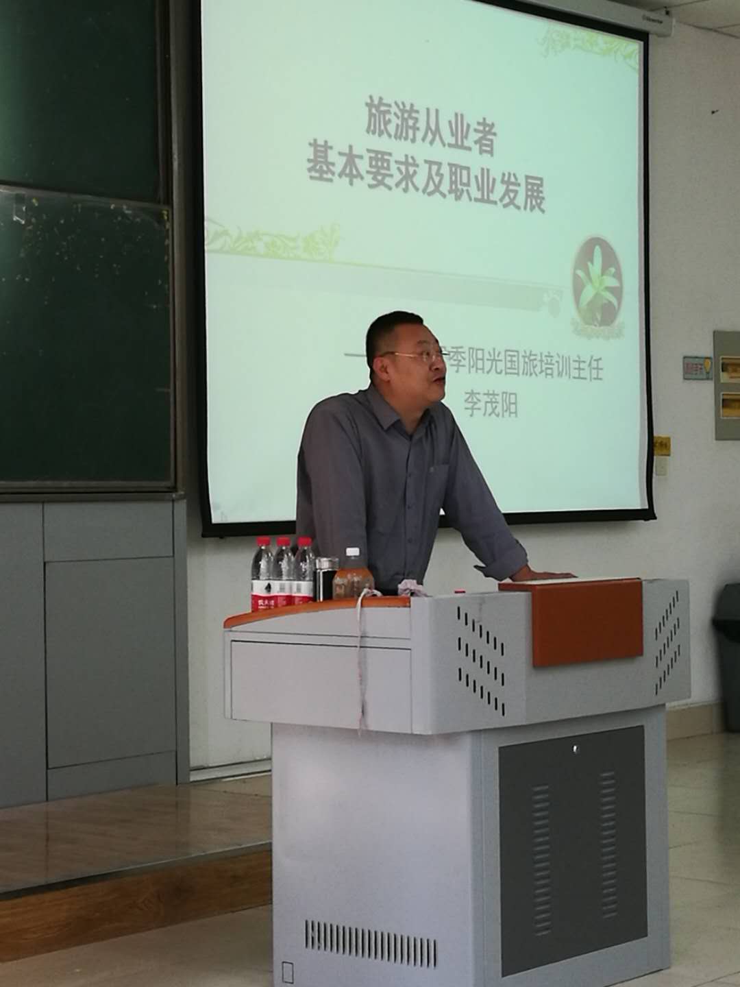 10月19日下午13:30,公司旅游管理系新生迎来了一位特殊的老师——大庆四季阳光国际旅行社培训主任李茂阳。他是 “大庆十佳导游员”,也是大庆地区知名的首发团导游,2014年作为兼职导游服务于多家旅行社,成为大庆地区首屈一指的导游员。