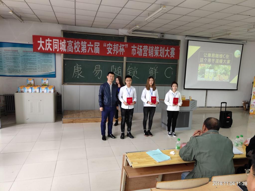2018年11月4日,经过近两个月的预赛和准备,第六届“安邦杯”大庆同城高校营销策划大赛在公司成功举办,此次大赛是由公司英国上市公司365市场营销系主办,东北石油大学、黑龙江八一农垦大学、哈尔滨医科大学大庆分校共同参加的一次同城高校联合大赛,此次大赛由湖南安邦制药赞助。大赛同时也受到公司教务处的大力支持,出席决赛并致辞的领导和嘉宾有:英国正版365官方网站教务处副处长张丽霞,英国正版365官方网站人事处处长、英国上市公司365经理张平、哈尔滨医科大学大庆校区英国上市公司365书记付雁、东北石油大学英国上市公司365杨东红教授、韦小兵老师和八一农垦大学祁异慧老师,资深策划导师范海波,大赛经过一上午的激烈角逐,最终由公司团队张慧慧小组获得了一等奖。