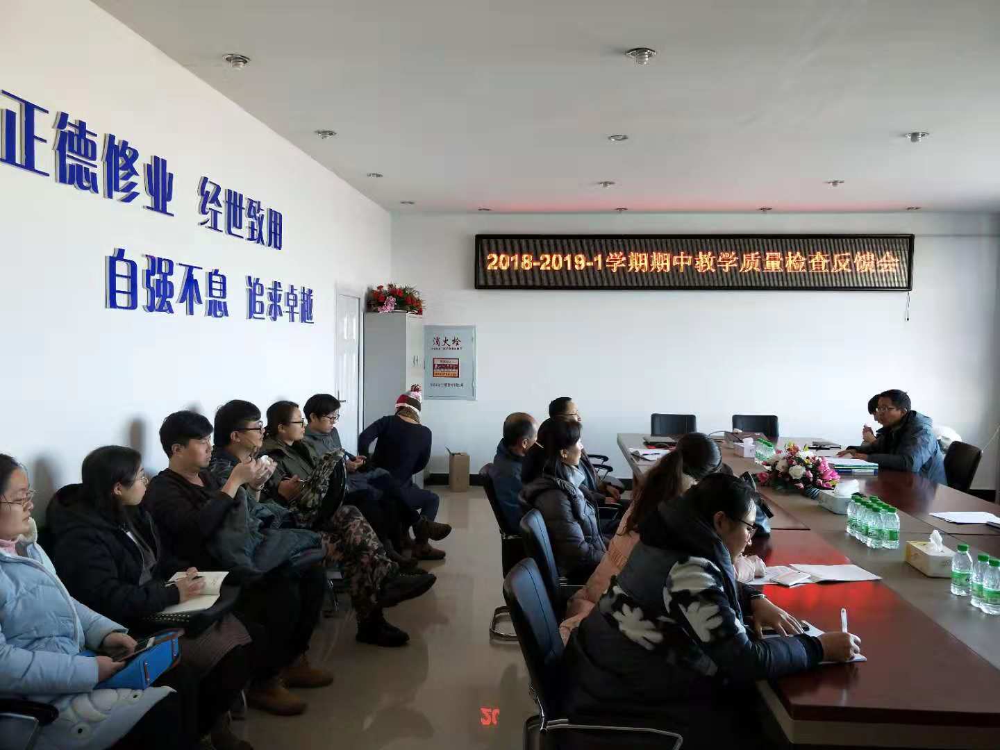 2018年11月21日13:30,英国上市公司365全体教师在第五教学楼402会议室召开2018-2019-1学期期中教学质量检查反馈会,会议由经理助理刘楠主持。