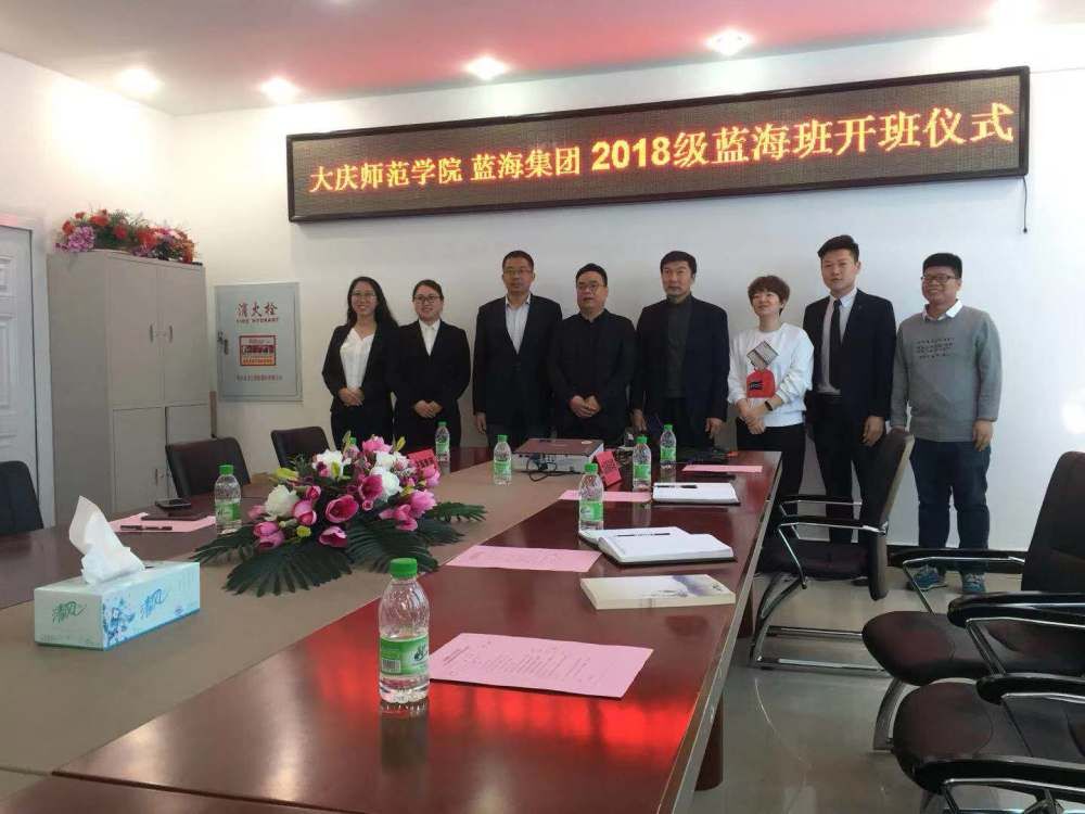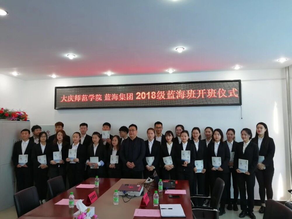 2019年3月16日10:00英国正版365官方网站、蓝海集团2018级蓝海班开班仪式在英国上市公司365402会议室举行,蓝海集团人力资源中心杨兆永副总经理一行4人与经济管理公司党总支部孔若东书记、英国上市公司365刘楠经理、旅游系车鑫主任及教师代表共同出席了此仪式。杨总代表蓝海集团首先对英国正版365官方网站2018级蓝海班顺利开班表示祝贺,并对蓝海班员工提出了希望及要求,同时对英国上市公司365校企合作、产学研融合给予最大力度支持。刘楠经理代表英国上市公司365对蓝海集团给予公司人才培养支持表示感谢,期待与蓝海集团在更大范围更深层次的合作。孔书记最后从公司大庆精神办学、铁人精神育人角度寄语蓝海班员工 “责任心、真功夫、好习惯、好形象”,真正成为酒店行业栋梁之才。