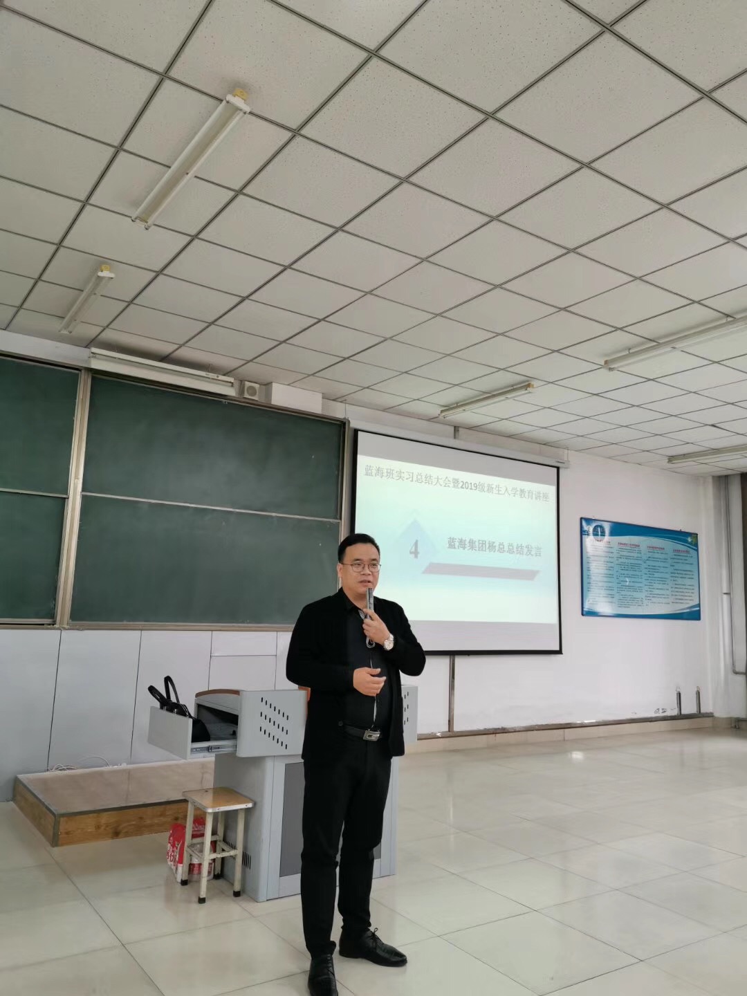 2019年11月6日,旅游管理系在主楼2-4成功举行了蓝海班实习总结大会暨2019级新生入学教育讲座,参加本次分享会的有蓝海集团人力资源部杨副总经理、招聘经理及专员、车鑫主任、旅游系教师、2018级蓝海班学员、2018级旅游管理专业及2019级旅游管理专业员工,共计150余人。2018级蓝海班员工在为期三个月的专业实习过程,受到蓝海集团、公司教师及领导的高度认可。蓝海集团为蓝海班实习生颁发了荣誉证书,两名优秀实习生代表分别从工作内容、工作方法、学习心得等角度分享了自己实习感悟,蓝海集团杨总从企业角度对员工实习期间的优异表现给予了表扬,并结合自己从业经历、国内外酒店发展差异性、蓝海集团发展优势及招聘、用人及培养人要求等角度分享了民族酒店崛起与职业机遇讲座。通过这次分享会,员工收获很多,旅游管理专业员工对专业认知、职业发展都有了更深层次认识。