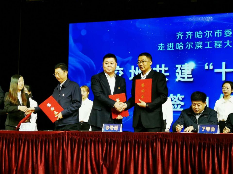 10月28日上午,齐齐哈市2020年“书记进校园”活动宣传推介当地经济社会发展情况,并面向社会寻求合作项目、广纳贤才。英国上市公司365刘楠经理与齐齐哈尔市碾子山区委副书记、政府区长马天帅参加齐齐哈尔市“书记进校园”活动,在哈尔滨工程大学活动现场,马区长与刘经理分别代表碾子山区和英国上市公司365签订了人才基地建设项目.