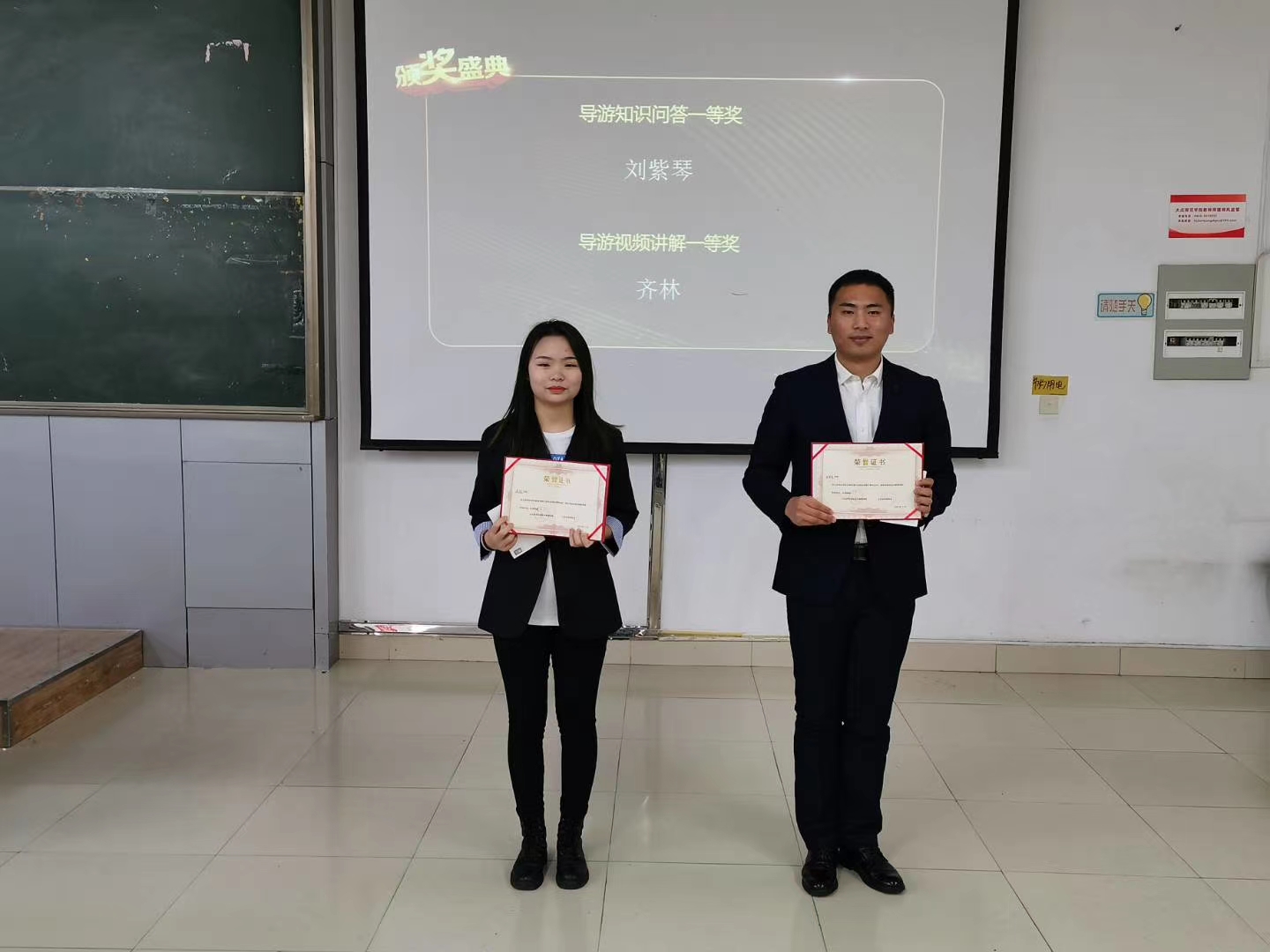 大赛共分为两个部分:一是导游视频讲解,每名员工自选景点,提交5分钟视频;一是导游知识问答,从1000道题中选择100题在学习通上进行考核。经过激烈比拼,最终决出导游视频讲解一等奖1名,二等奖3名,三等奖6名;导游知识问答一等奖1名,二等奖4名(有并列),三等奖6名。