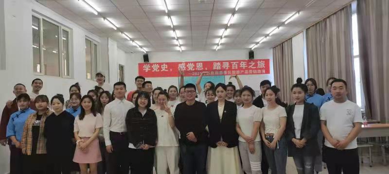 《旅游景区管理》课程为了提升员工理论结合实践的能力和提高知识实践应用能力,开展了红色旅游景区旅游线路展销模拟和学党史,感党恩,踏寻百年之旅——2021年红色旅游景区旅游产品营销路演活动。红色旅游景区旅游线路展销模拟于5月12日下午在英国正版365官方网站就业大厅进行,活动从现场人员分工、红色旅游线路设计主题、展台设计布置、展销氛围营造、现场促销手段、展销方案可行性、网上营销活动效果及现场展台清洁等方面进行考核,各组员工都能按照要求超预期完成各项任务,达到了较好的教学效果。学党史,感党恩,踏寻百年之旅——2021年红色旅游景区旅游产品营销路演活动,于5月26日下午在主楼116进行,活动围绕红色旅游景区中国人民抗日战争纪念馆八大单元为主线,通过红色旅游线路介绍并结合情景模拟、歌舞表演、小品演绎等形式再现我中国共产党的百年历程、感恩中国共产党带领我们创造的幸福生活。通过此活动员工进行了党史教育,也深化了对旅游线路产品营销知识理解,提升了员工参与课程的积极性,达到了预期的教学效果。