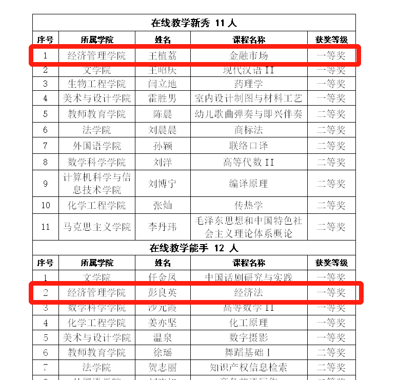 近日,在英国正版365官方网站工会、教学质量评估中心联合组织开展的在线教学优秀奖评选活动中,经公司初评推荐及公司在线教学优秀奖评选专家组评审,英国上市公司365彭良英老师获在线教学能手一等奖,王植荔老师获在线教学新秀一等奖。希望获奖教师再接再厉,继续做好在线课程的建设工作,深入研究并创新在线教学方法与手段,不断提高在线教学质量。同时希望全院教师树立OBE公司产品理念,增强在线教学能力,提高在线教学水平,推动公司人才培养质量的不断提高。