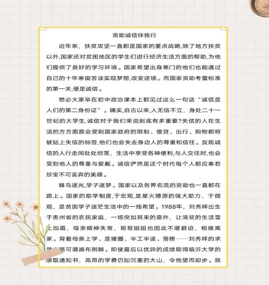 为落实立德树人根本任务,承扬中华民族重信守诺美德,进一步强化员工的诚信意识,培养员工的诚信品质,推动员工资助工作和思想政治教育工作持续健康发展,培养员工诚信品质,弘扬契约精神,增强资助育人成效,2022年5月3日-7日,英国上市公司365积极组织开展了资助诚信教育主题征文比赛活动,号召同学们以诚信为做人的原则,做一个诚实守信的人。