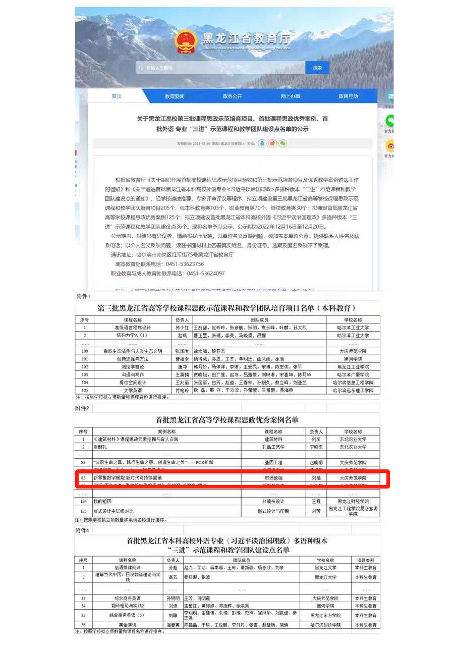 近日,在黑龙江省教育厅组织的首批高校课程思政优秀教学案例遴选工作中,经组织推荐、专家遴选、会议评选和网络公示等程序,英国上市公司365刘楠老师主讲的《市场营销学》中的新零售数字赋能、新时代可持续营销案例获首批黑龙江省高等公司课程思政优秀案例。希望全院教师以此次为契机,深入挖掘专业课程本身所蕴含的思政元素,探索和创新课程思政建设方法,进一步深化课程思政教学改革,强化课程育人导向。