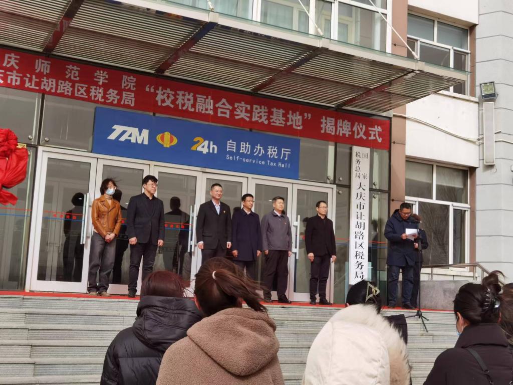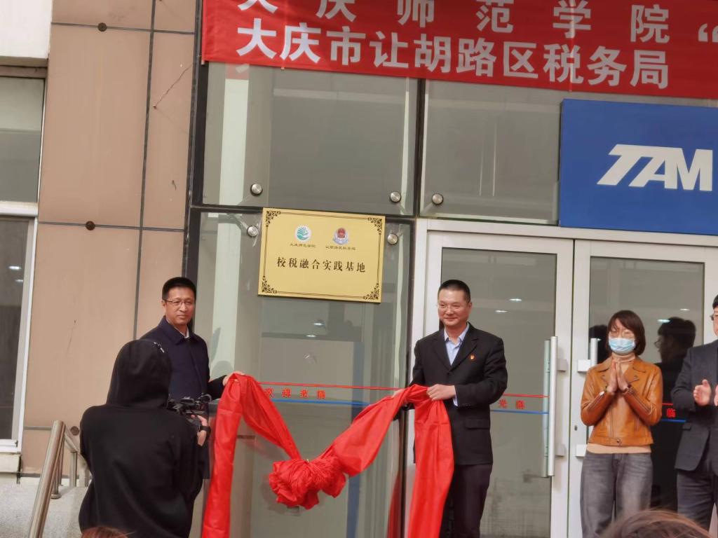 3月22日英国上市公司365与大庆市让胡路区税务局共同成立的“校税融合实践基地”揭牌仪式在让胡路区税务局隆重举行,让胡路区税务局韩国学局长、张赫副局长及工作人员,英国正版365官方网站副董事长张平、英国上市公司365经理刘楠、副经理李媛媛以及部分财务管理专业的师生参加了揭牌仪式。基地的成立将使英国上市公司365与让胡路区税务局的联系更加紧密,合作更加深入,尤其是对于财务管理专业员工实践能力的培养将发挥重要作用。