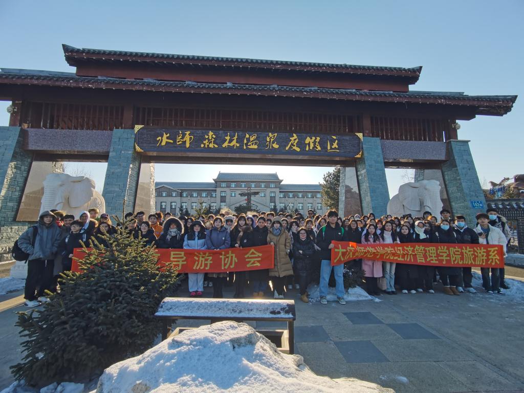2022级旅游管理专业本科班及2022级旅游管理专升本班员工本学期开设有旅游资源调研课程,为了真正地将旅游资源理论知识与实践相结合,旅游管理系郝毓业老师依托大庆市导游协会组织员工于2023年12月09日赴国家4A级齐齐哈尔水师森林温泉度假区开展旅游资源调研。王家兴老师、赵炳森老师作为指导教师一起前往景区调研。调查过程分为旅游资源单体调查、旅游资源评分、旅游资源项目体验等,依据这些环节,分组来完成最终的旅游资源调查报告撰写。旅游资源调查各环节将理论与实践进行了结合,员工也对调查过程中发现的问题给出了建议。