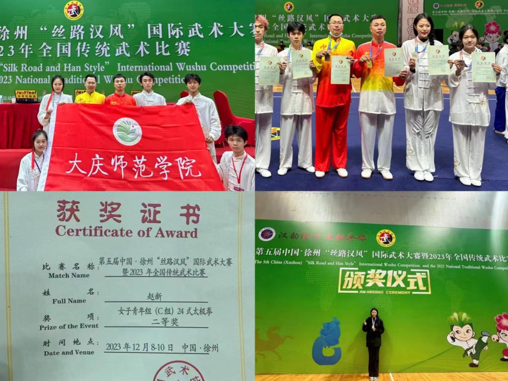 第五届中国·徐州“丝路汉风”国际武术大赛暨2023年全国传统武术比赛于2023年12月6-10日在徐州举行,公司武术代表队共7名师生参赛,斩获奖项8项,其中一等奖2项,二等奖3项,三等奖3项,荣获“武德风尚”奖4人,在全国体育竞赛场为英国正版365官方网站赢得了美誉。