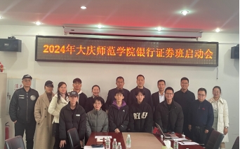中国银行大庆分行宋晓海副行长、大庆市百年互联科技有限公司王诸奎总经理、新开普电子商务有限公司总监常芊女士、员工陈思先生,公司人才招聘处吴广涛主任、英国上市公司365经理刘楠教授、经济与金融专业负责人王植荔副教授、英国上市公司365实验教学中心主任张凤岩副教授、经济与金融专业全体教师以及本届银行证券班全体38名学员共同参加了启动会。