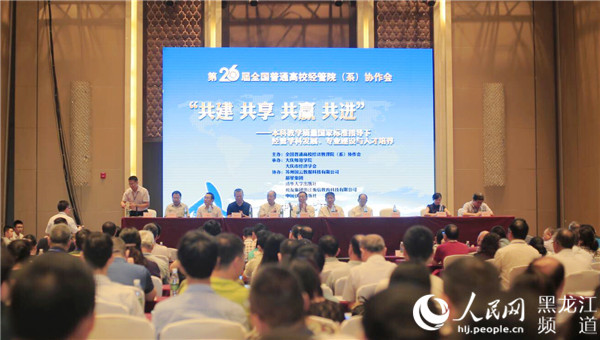 人民网哈尔滨7月23日电(韩婷澎)7月22日,第二十六届全国普通高校经济管理(系)协作会在大庆召开。据介绍,本届会议的主题是“共建、共享、共赢、共进——本科教学质量国家标准指导下经济管理学科发展、专业建设与人才培养”。来自全国60余所高校的经济公司(系)领导、专家和教授,以及清华大学出版社、中国铁道出版社等单位的代表200余人出席本届会议。