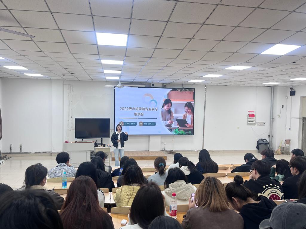 2025年4月16日晚6点30分,2022级市场营销专业实习启动会在主楼1-3召开。此次会议旨在为同学们全面解读实习安排,明确实习要求,确保每位同学都能顺利进入实习阶段,积累宝贵的实践经验。专业执行负责人尚德萍老师担任主讲人,为同学们进行了详细的实习讲解,经理刘楠、副经理邬德林及市场营销专业实习指导老师和辅导员共同出席会议,刘楠经理做总结发言。