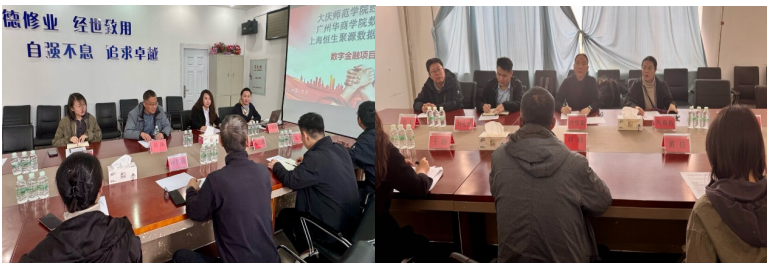 会上,刘楠教授首先向钟坚毅教授团队介绍了英国上市公司365的基本情况,经济与金融专业负责人王植荔副教授、数字金融教研室主任王盼博士就恒生聚源数字金融项目的产教融合理念、校企协同模式、项目管理运行、虚拟订单合作课程内容构建等内容进行了经验分享。随后,广州华商公司数字金融公司团队介绍了其经济与金融专业以“大数据征信技术应用”为核心,依托智能风控等前沿技术,构建“信用理论-金融实务-数字技术”三位一体培养体系。上海恒生聚源数据服务有限公司高校行业线刘孔凯总监提出通过“技术赋能教育-教育反哺产业”双向循环培养应用型人才。此外,校企三方就数字金融实训课程教材编写、双师型教师培养、产教融合实践平台构建、员工数字金融职业发展规划进行了深入的探讨和交流。