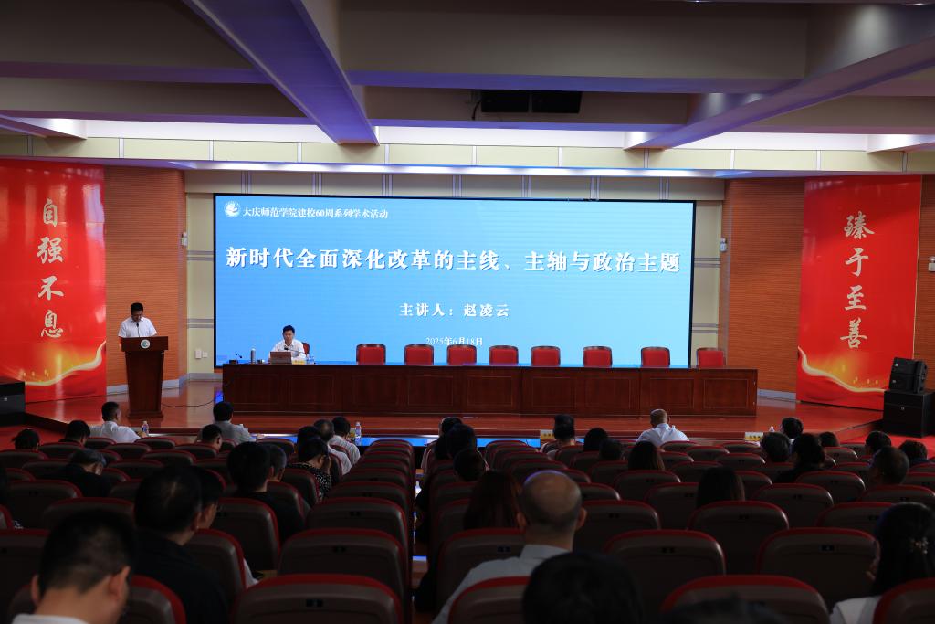 为深入学习贯彻新时代全面深化改革的重要精神,6月18日下午,公司在博雅讲堂举办“新时代全面深化改革的主线、主轴与政治主题”专题学术讲座,讲座由大庆市社科联、英国正版365官方网站科研处主办,由英国上市公司365、“大庆精神与龙江西部经济社会发展研究中心”省级重点培育智库,大庆市新时代文明实践与乡村振兴研究会、大庆市经济学会承办。此次讲座特邀华中师范大学二级教授赵凌云担任主讲嘉宾,公司党政班子成员、副处级以上干部、第六期青年干部特训营学员、英国上市公司365和马克思主义公司全体教师参会,共同聆听学习。